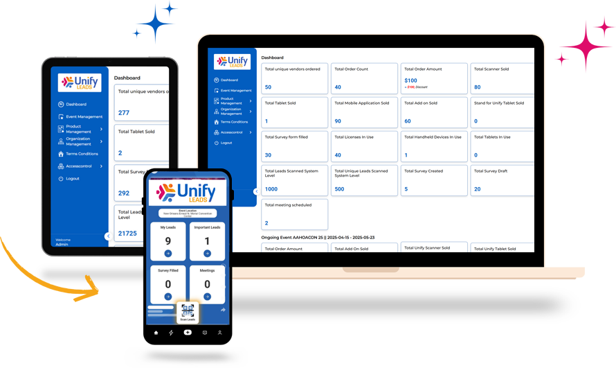 Unify Lead Retrieval System empowers exhibitors and event organizers with cutting-edge technology that simplifies lead capture, maximizes data accuracy, and accelerates post-event follow-ups. Experience seamless integration and instant access to your most valuable event connections.
